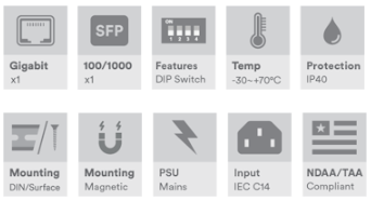 Alle SFP-porter er multirate 100 Mb/Gigabit – støtter enkelt- og multimodus, enkelt- eller dobbeltfiberalternativer opptil 120 km