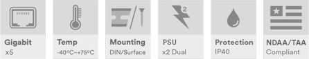 Industriell 5-porters ustyrt svitsj, 5 x 10/100/1000Base-T(x) RJ45-porter, DIN-skinne/veggmontering, -40 °C til +75 °C, 12–60 VDC strøminngang