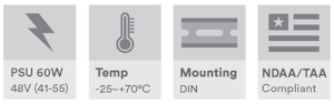 48 VDC, 60 W (1,25 A) industriell strømforsyning, DIN-skinnemontering, -25 °C til +70 °C, (Justerbar 41–55 VDC), NDAA- og TAA-kompatibel, laget i EU